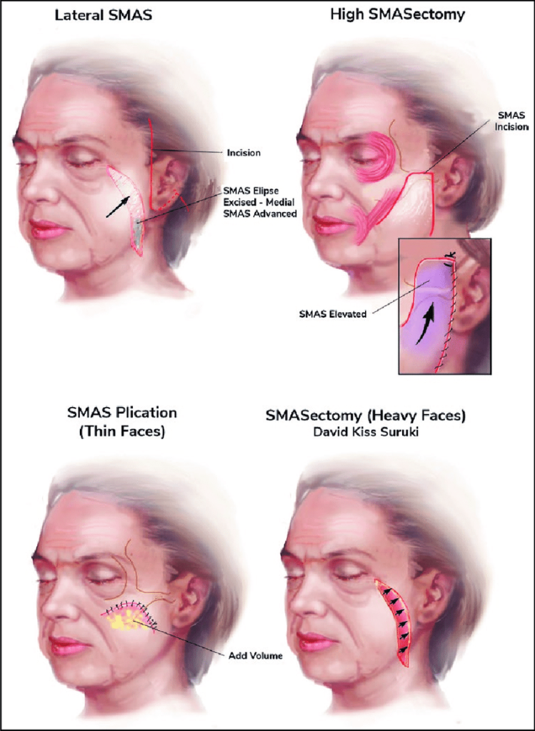 皮膚の下を丁寧に剥離し、顔の支持組織であるSMASを処理します。