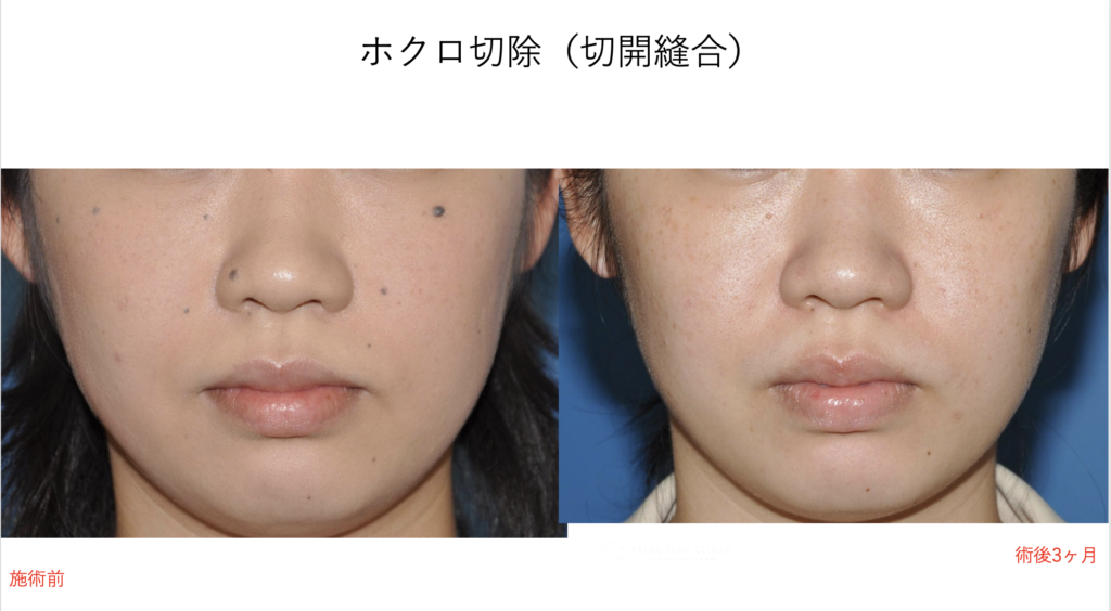 【リスク】痛み、内出血、傷が開く、若干の凹みが残るなど 【料金】ホクロ切除1個:11000円(税込)