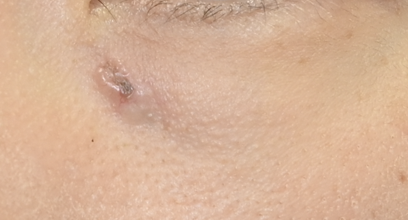 病理検査の結果、基底細胞癌であり、拡大切除が必要となった。