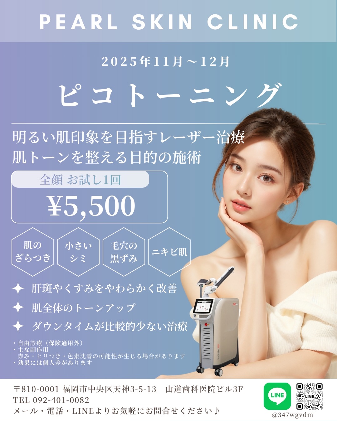2025/10/24 11月〜12月 しみ・くすみ・肝斑治療 ピコトーニング